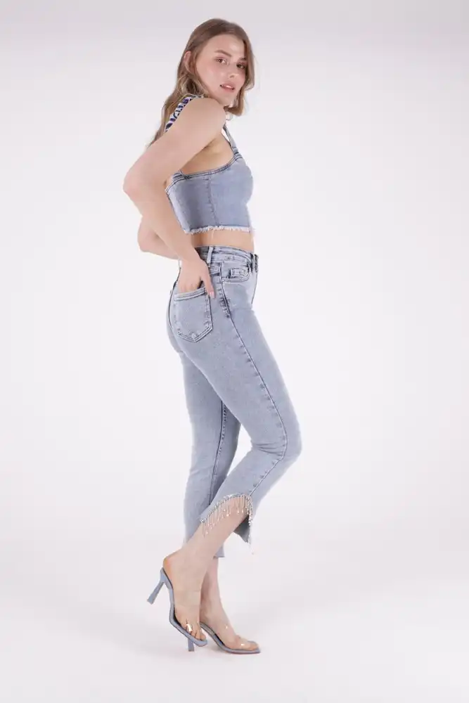 Taşlı Asimetrik Paça Pantolon