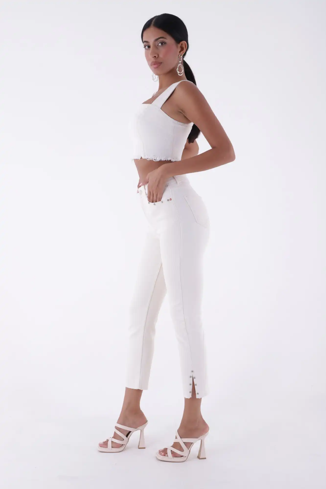 Yanı Yırtmaçlı Flare Paça Mom Kot Pantolon